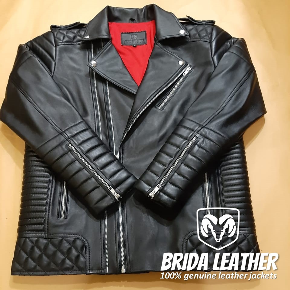 Jual Jaket Kulit Asli Domba Garut Pria Asli Hitam Bikers Ramones Super Brida Leather Shopee Indonesia